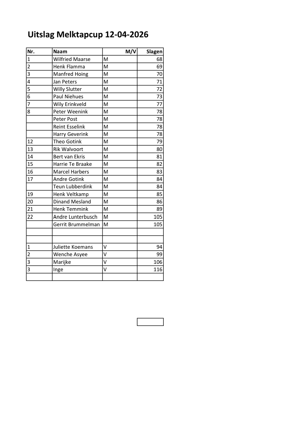 Zondag 12 april Melktap Open Verslag en Uitslag
